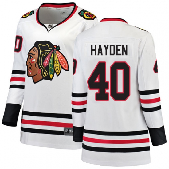 Home>NHL>Chicago Blackhawks>John Hayden>Women's Chicago Blackhawks #40 John Hayden Authentic White Away Fanatics Branded Breakaway NHL Jersey