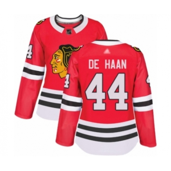 >Women's Chicago Blackhawks #44 Calvin De Haan Authentic Red Home Hockey Jersey