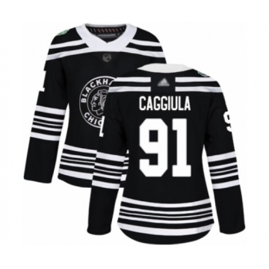 Women's Chicago Blackhawks #91 Drake Caggiula Authentic Black 2019 Winter Classic Hockey Jersey