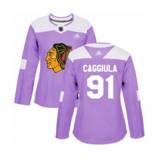 >Women's Chicago Blackhawks #91 Drake Caggiula Authentic Purple Fights Cancer Practice Hockey Jersey