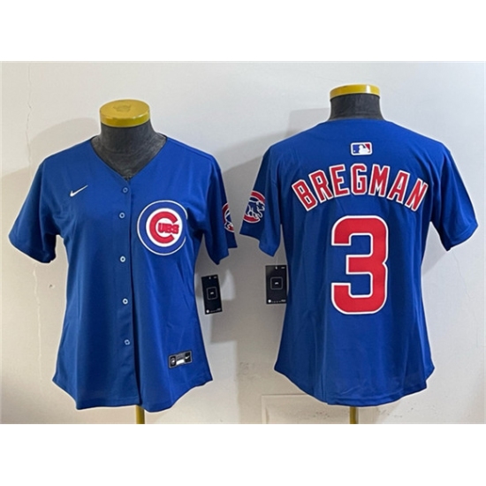 >Women's Chicago Cubs #3 Alex Bregman Royal Vapor Limited Stitched Baseball Jersey(Run Small)