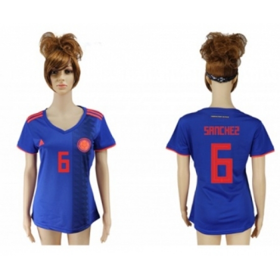 >Women's Colombia #6 Sanchez Away Soccer Country Jersey
