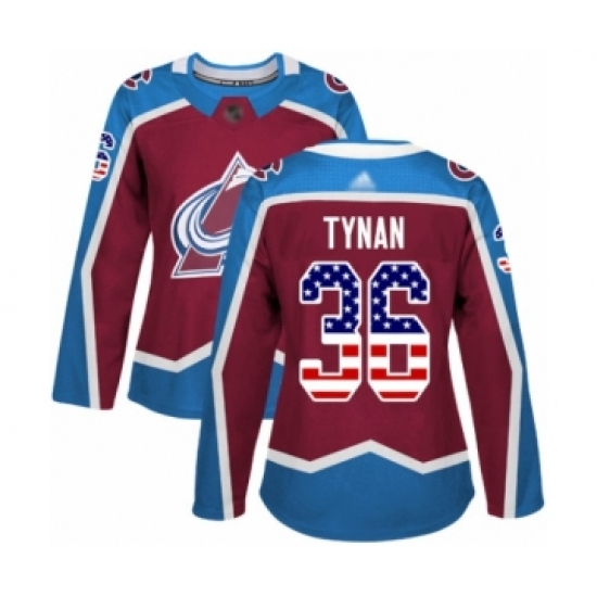 Women's Colorado Avalanche #36 T.J. Tynan Authentic Burgundy Red USA Flag Fashion Hockey Jersey