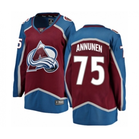 >Women's Colorado Avalanche #75 Justus Annunen Authentic Maroon Home Fanatics Branded Breakaway NHL Jersey