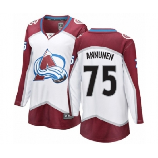 >Women's Colorado Avalanche #75 Justus Annunen Authentic White Away Fanatics Branded Breakaway NHL Jersey
