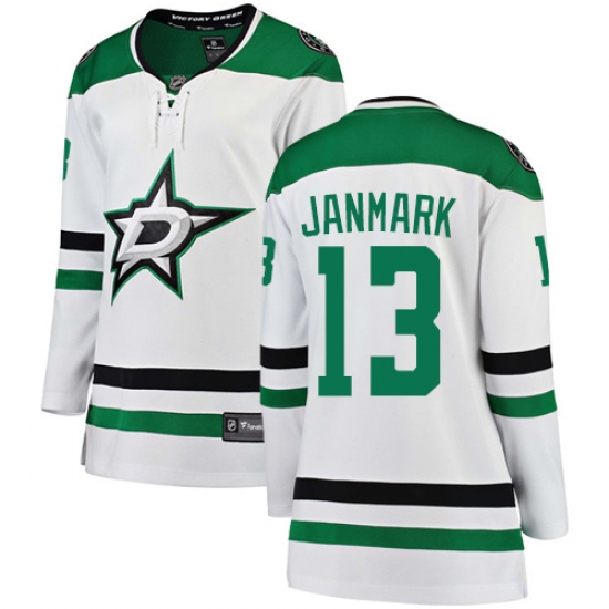 Home>NHL>Dallas Stars>Mattias Janmark>Women's Dallas Stars #13 Mattias Janmark Authentic White Away Fanatics Branded Breakaway NHL Jersey