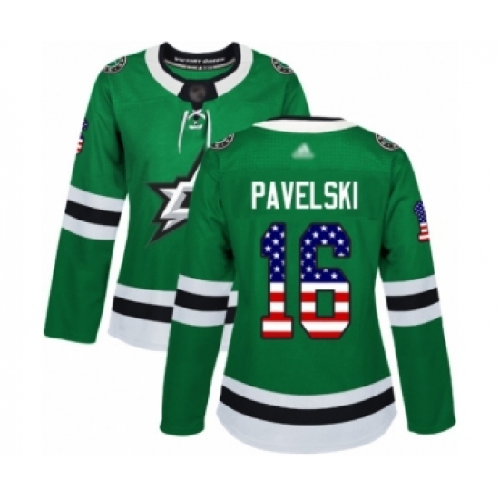 >Women's Dallas Stars #16 Joe Pavelski Authentic Green USA Flag Fashion Hockey Jersey