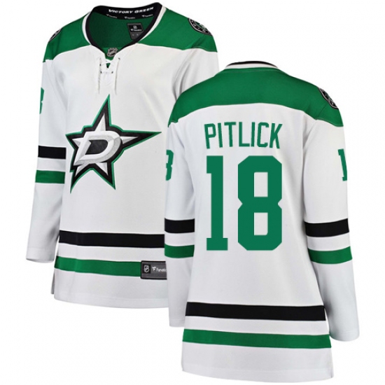 Home>NHL>Dallas Stars>Tyler Pitlick>Women's Dallas Stars #18 Tyler Pitlick Authentic White Away Fanatics Branded Breakaway NHL Jersey