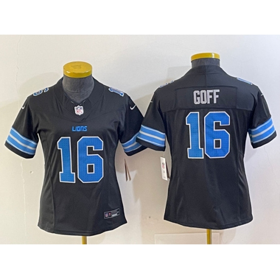 Women's Detroit Lions #16 Jared Goff Black 2024 F.U.S.E. 2nd Alternate Vapor Limited Football Stitched Jersey(Run Smaller)