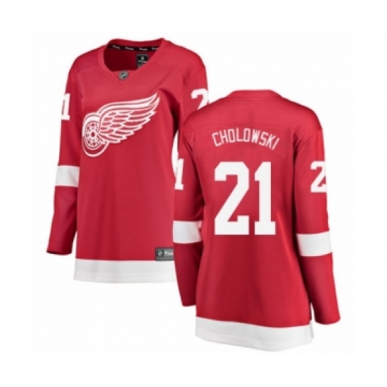 >Women's Detroit Red Wings #21 Dennis Cholowski Authentic Red Home Fanatics Branded Breakaway NHL Jersey