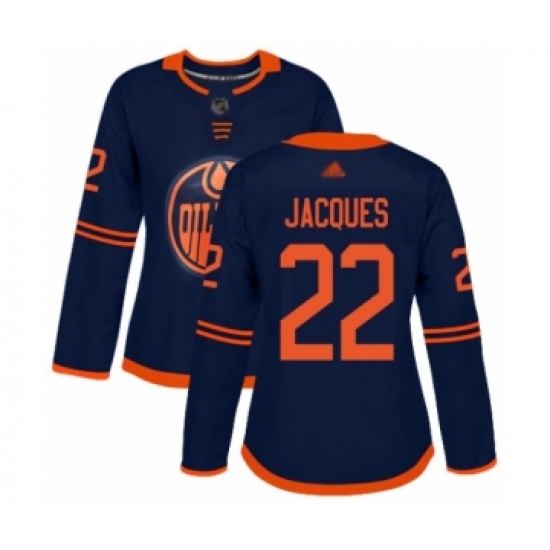 >Women's Edmonton Oilers #22 Jean-Francois Jacques Authentic Navy Blue Alternate Hockey Jersey