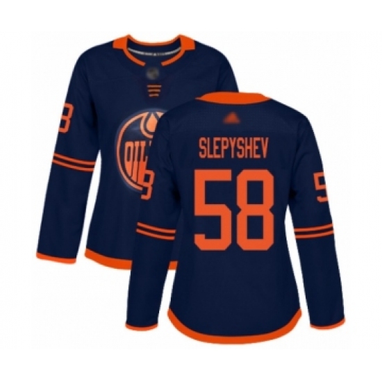 Women's Edmonton Oilers #58 Anton Slepyshev Authentic Navy Blue Alternate Hockey Jersey