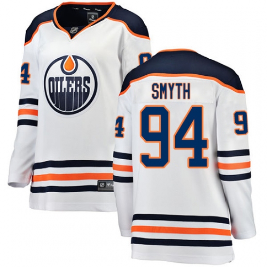 Home>NHL>Edmonton Oilers>Ryan Smyth>Women's Edmonton Oilers #94 Ryan Smyth Authentic White Away Fanatics Branded Breakaway NHL Jersey