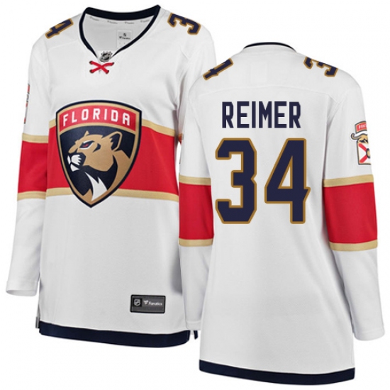 Home>NHL>Florida Panthers>James Reimer>Women's Florida Panthers #34 James Reimer Authentic White Away Fanatics Branded Breakaway NHL Jersey