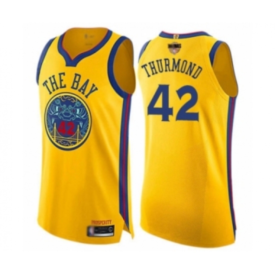Men's Golden State Warriors #42 Nate Thurmond Swingman Gold 2019 Basketball Finals Bound Basketball Jersey - City Edition