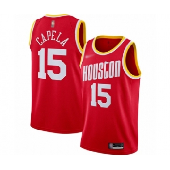 Men's Houston Rockets #15 Clint Capela Authentic Red Hardwood Classics Finished Basketball Jersey