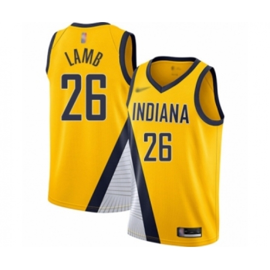 Men's Indiana Pacers #26 Jeremy Lamb Authentic Gold Basketball Jersey Statement Edition