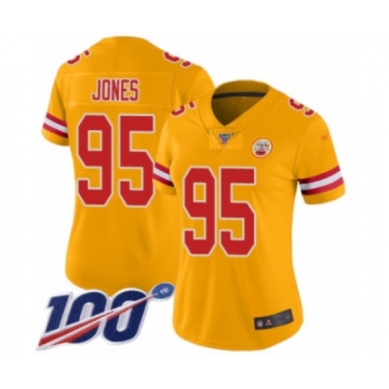 Women's Kansas City Chiefs #95 Chris Jones Limited Gold Inverted Legend 100th Season Football Jersey