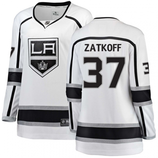 Home>NHL>Los Angeles Kings>Jeff Zatkoff>Women's Los Angeles Kings #37 Jeff Zatkoff Authentic White Away Fanatics Branded Breakaway NHL Jersey