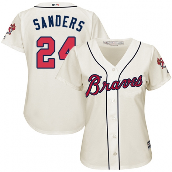 Women's Majestic Atlanta Braves #24 Deion Sanders Authentic Cream Alternate 2 Cool Base MLB Jersey
