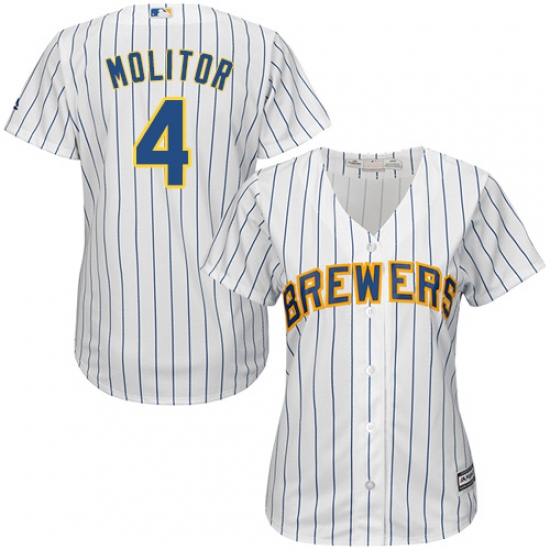 Women's Majestic Milwaukee Brewers #4 Paul Molitor Replica White Alternate Cool Base MLB Jersey