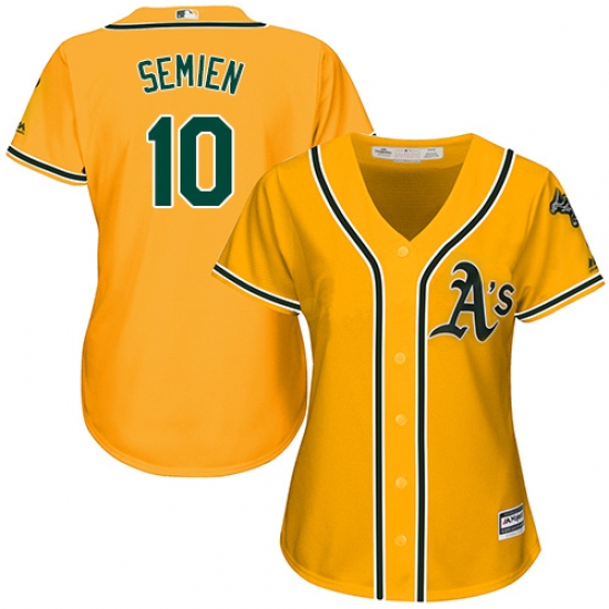 Women's Majestic Oakland Athletics #10 Marcus Semien Authentic Gold Alternate 2 Cool Base MLB Jersey