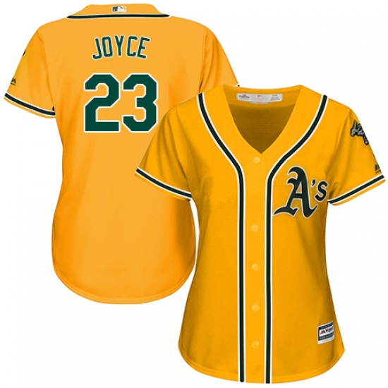 Home>MLB>Oakland Athletics>Matt Joyce>Women's Majestic Oakland Athletics #23 Matt Joyce Replica Gold Alternate 2 Cool Base MLB Jersey