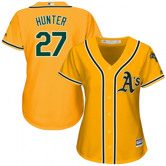 Home>MLB>Oakland Athletics>Catfish Hunter>Women's Majestic Oakland Athletics #27 Catfish Hunter Authentic Gold Alternate 2 Cool Base MLB Jersey