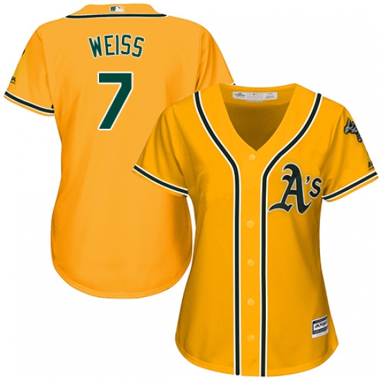 Home>MLB>Oakland Athletics>Walt Weiss>Women's Majestic Oakland Athletics #7 Walt Weiss Replica Gold Alternate 2 Cool Base MLB Jersey