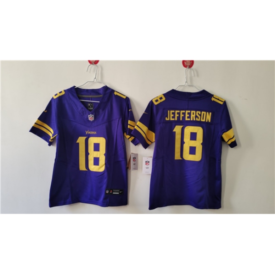 Women's Minnesota Vikings #18 Justin Jefferson Purple Color Rush F.U.S.E. Limited Football Stitched Jersey