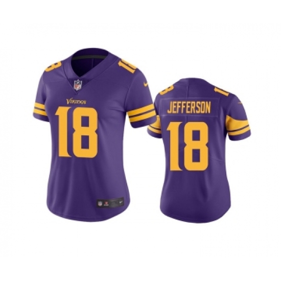 Women's Minnesota Vikings #18 Justin Jefferson Purple Limited Rush Stitched NFL Jersey