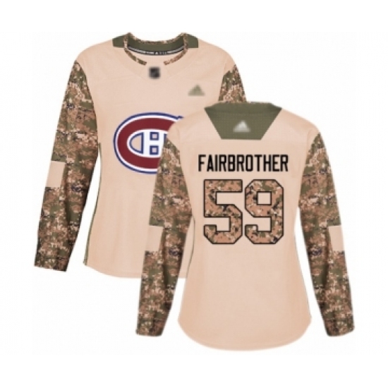 >Women's Montreal Canadiens #59 Gianni Fairbrother Authentic Camo Veterans Day Practice Hockey Jersey