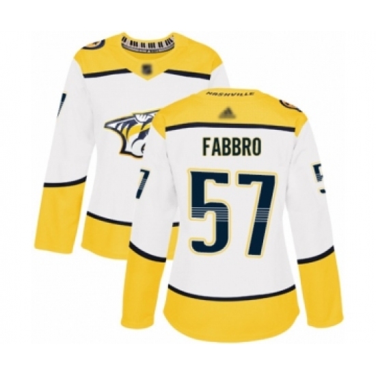 >Women's Nashville Predators #57 Dante Fabbro Authentic White Away Hockey Jersey