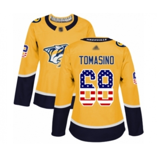 Women's Nashville Predators #68 Philip Tomasino Authentic Gold USA Flag Fashion Hockey Jersey