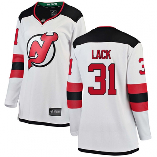 >Women's New Jersey Devils #31 Eddie Lack Fanatics Branded White Away Breakaway NHL Jersey