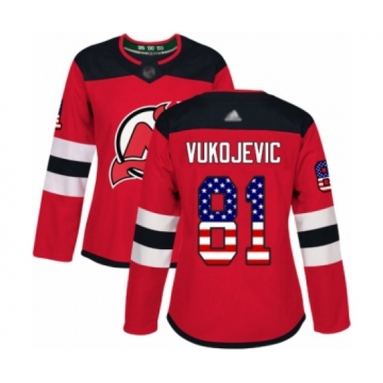 Women's New Jersey Devils #81 Michael Vukojevic Authentic Red USA Flag Fashion Hockey Jersey