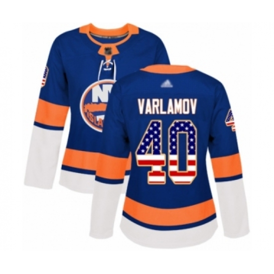 >Women's New York Islanders #40 Semyon Varlamov Authentic Royal Blue USA Flag Fashion Hockey Jersey