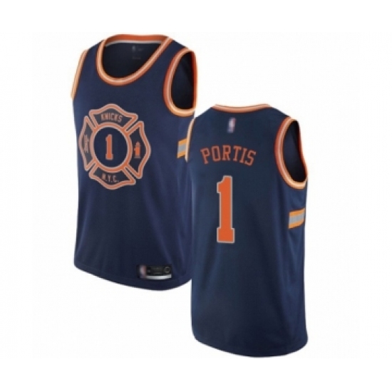 Men's New York Knicks #1 Bobby Portis Authentic Navy Blue Basketball Jersey - 2018 19 City Edition
