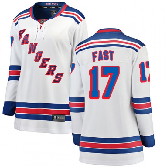 Home>NHL>New York Rangers>Jesper Fast>Women's New York Rangers #17 Jesper Fast Fanatics Branded White Away Breakaway NHL Jersey