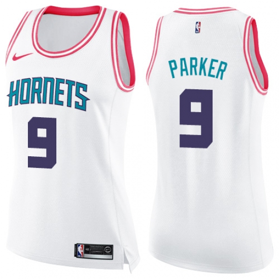 Women's Nike Charlotte Hornets #9 Tony Parker Swingman White Pink Fashion NBA Jersey