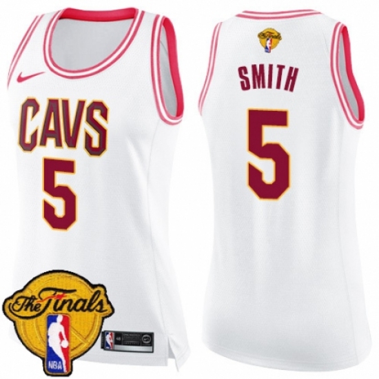Women's Nike Cleveland Cavaliers #5 J.R. Smith Swingman White/Pink Fashion 2018 NBA Finals Bound NBA Jersey