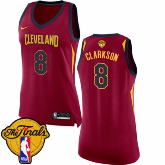 >Women's Nike Cleveland Cavaliers #8 Jordan Clarkson Swingman Maroon 2018 NBA Finals Bound NBA Jersey - Icon Edition