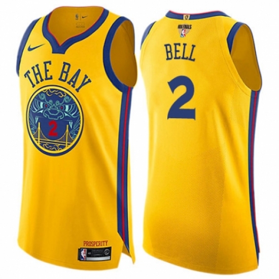 Men's Nike Golden State Warriors #2 Jordan Bell Swingman Gold 2018 NBA Finals Bound NBA Jersey - City Edition