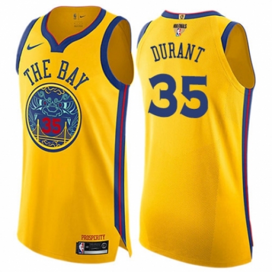 Men's Nike Golden State Warriors #35 Kevin Durant Authentic Gold 2018 NBA Finals Bound NBA Jersey - City Edition