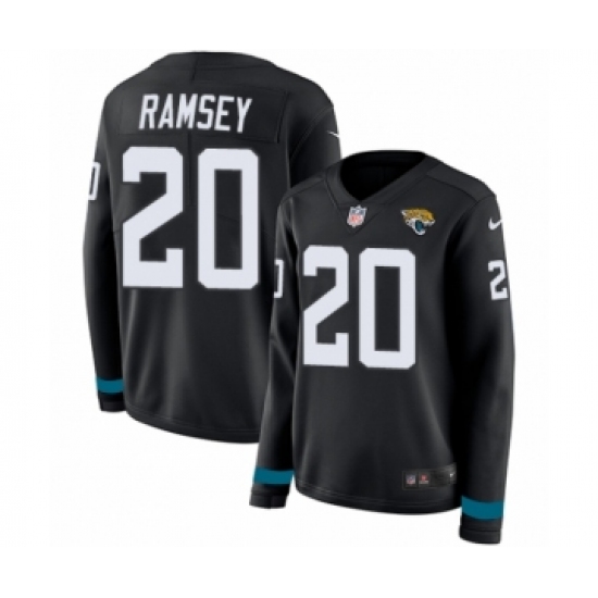 >Women's Nike Jacksonville Jaguars #20 Jalen Ramsey Limited Black Therma Long Sleeve NFL Jersey