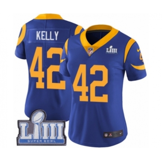 >Women's Nike Los Angeles Rams #42 John Kelly Royal Blue Alternate Vapor Untouchable Limited Player Super Bowl LIII Bound NFL Jersey