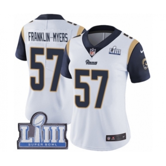 Women's Nike Los Angeles Rams #57 John Franklin-Myers White Vapor Untouchable Limited Player Super Bowl LIII Bound NFL Jersey