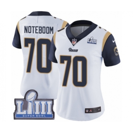 Women's Nike Los Angeles Rams #70 Joseph Noteboom White Vapor Untouchable Limited Player Super Bowl LIII Bound NFL Jersey