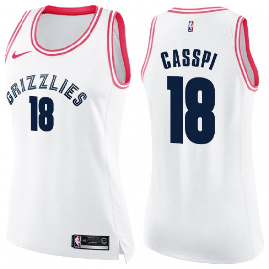 >Women's Nike Memphis Grizzlies #18 Omri Casspi Swingman White Pink Fashion NBA Jersey