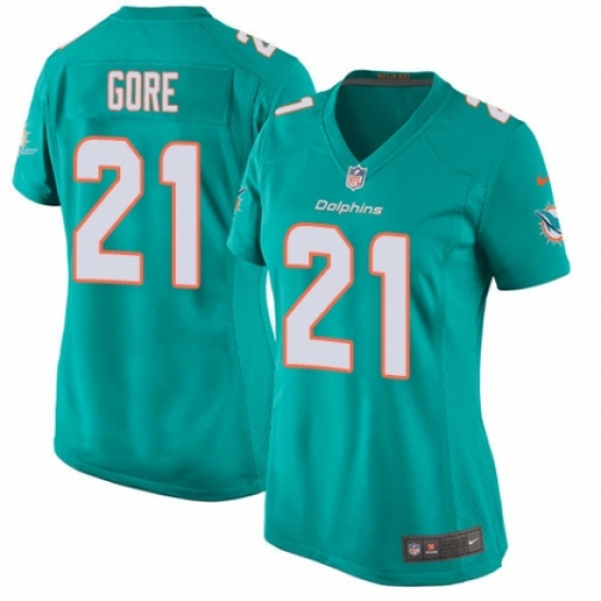 Women's Nike Miami Dolphins #21 Frank Gore Game Aqua Green Team Color NFL Jersey